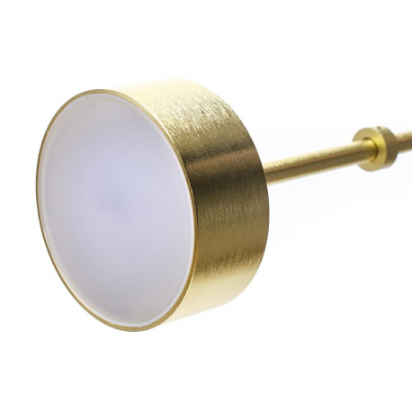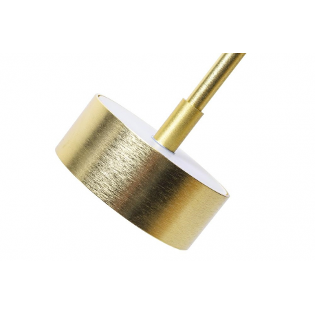 Wewnątrz kuli jest złoty, szczotkowany pręt zakończony źródłem światła LED.