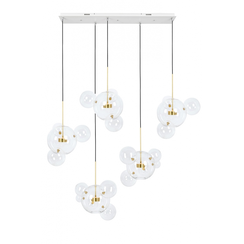 Pięć głównych kul zawieszonych zostało na przewodach, wychodzących z jednej podsufitki.