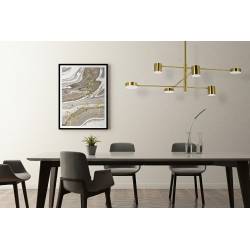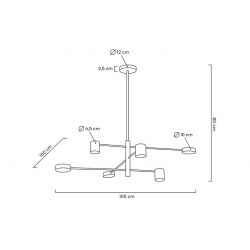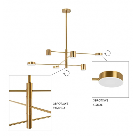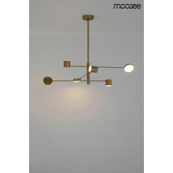MOOSEE lampa wisząca PIAZETTA złota.Piazetta została wykonana ze stali w kolorze złotym. Naprzemienne rozmieszczenie kloszy o różnych rozmiarach i średnicach sprawia, że lampa oferuje ciepłe i rozproszone światło. Designerskie wzornictwo doskonale pasuje do nowoczesnych wnętrz.Światło: 6 x LED 6 W / 2900 lm / 3000 KOprawa: wys. 80 cm / szer. 100 cm / gł. 100 cmKlosze LED: wys. 3 cm / wys. 7,5 cm - śr. 10 cm / 6,5 cmRamie: dł. całkowita 75, 5 cmMocowanie: śr. 12 cm / wys. 2,5 cmMontaż: instalacja sufitowaWaga netto: 2 kgWymiary opakowania: 95 cm / 40 cm / 18 cm.