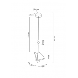 MOOSEE lampa wisząca BUTTERFLY S złota.Designerski motyw lampy wykonany z aluminium w kolorze złotym z transparentnymi, kryształowymi skrzydłami.Na regulowanej lince mocującej znajduje się element dekoracyjny w kształcie kulek w kolorze podsufitki.Seria lamp Butterfly pozwala na stworzenie ciekawych i spójnych aranżacji.Światło: LED 5 W / 400 lm / 3000 KWymiary: wys. 245 cm / szer. 12 cm / gł. 16 cmOprawa: wys. 20 cm / szer. 12 cm / gł. 16 cmKulki: śr. 3 cm x 2, 4,5 cm x 1 / wys. łączna: 10,5 cmMocowanie: wys. 4,5 cm / śr. 10 cmPrzewód: 225 cmMontaż: instalacja sufitowaWaga netto: 2,5 kg.