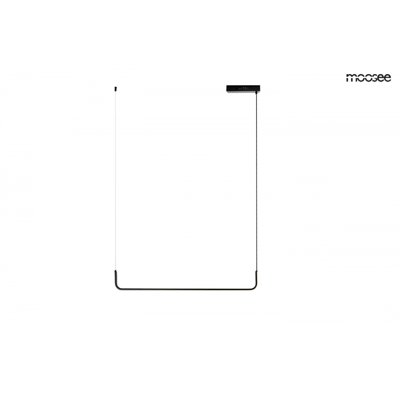 MOOSEE lampa wisząca SHAPE 90 czarna. Nowoczesna, aluminiowa oprawa w minimalistycznej formie. Zintegrowane źródło światła zawieszone na prostokątnej montaturze można zamontować w dowolną stronę. Un