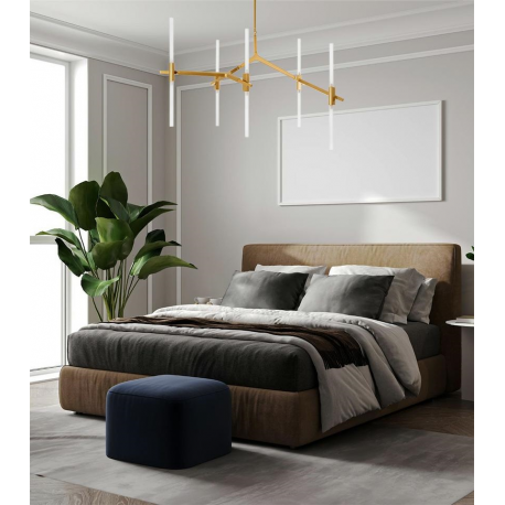MOOSEE lampa wisząca CANDELABR 10 złota.Niebanalna i nowoczesna propozycja oświetlenia o ciekawym kształcie.Asymetryczne ułożenie oprawy z możliwością regulacji kloszy i ramion.Konstrukcja lampy została wykonana z metalu, a wymienne źródło światła osłania dziesięć szklanych, podłużnych kloszy.Światło: 10 x G9 max. 5 W (brak w zestawie)Wymiary: wys. 150 cm / szer. 150 cm / gł. 150 cmOprawa: wys. 90 cm / szer. 150 cm / gł. 150 cmKlosz: wys. 28 cm / śr. 2,5 cmMocowanie: śr. 15 cm / wys. 3,5 cmRegulacja wysokości: 1 x 22 cm / 1x 33 cmWaga netto: 8 kgWymiary opakowania: 143 cm / 82 cm / 13 cm.