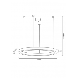 Lampa wisząca Ring Luxury 110 wykonana ze stali w kolorze chromowanego złota.Osłona klosza zrobiona z mlecznego tworzywa sztucznego. Okrągły kształt oraz źródło światła LED zapewniają optymalne oświetlenie pomieszczenia.Lampa sprzedawana wraz ze źródłem światła. W kolekcji lamp Ring znajdują się różne rozmiary oraz warianty kolorystyczne. Światło: LED 66 W / 5280 lm / 3000 K (możliwość odpłatnej zmiany na 4000 K)Oprawa: wys. 300 cm / szer. 110 cm / gł. 110 cmKlosz: śr. 110 cm / wys. 6 cmMontaż: instalacja sufitowaWaga netto: 8 kgWymiary opakowania: 117 cm / 117 cm / 13 cm.