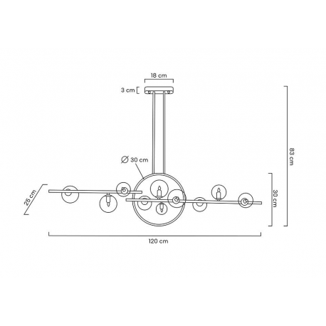 MOOSEE lampa wisząca ALURE LINE TWIN 120.Innowacyjne rozwiązanie w kategorii oświetlenia. Połączenie standardowych kloszy ze świecącą obręczą LED.Konstrukcja lampy wykonana jest z metalu w kolorze czarnym. Model ten doskonale sprawdzi się w nowoczesnychi designerskich wnętrzach użyteczności publicznej, jak również w domowym zaciszu.Kolekcja Alure pozwala na stworzenie spójnych i ciekawych aranżacji.Światło: 10 x G9 max. 5 W (brak w zestawie) + LED 17 W / 1360 lm / 3000 KOprawa: wys. 83 cm / szer. 120 cm / gł. 25 cmKlosz: wys. 30 cm / szer. 120 cm / gł. 25Klosz LED: śr. 30 cmSzklane klosze: śr. 4 x 11 cm, 5 x 8,5 cm, 1 x 5,5 cmRamiona poziome: dł. .75 cm / dł. 53,5 cmRegulacja wysokości: 1 x 30 cm / 1 x 20 cmMontatura: wys. 3 cm / szer. 18 cm / gł. 5 cmMontaż: instalacja sufitowaWaga netto: 4 kgWymiary opakowania: 127 cm / 42 cm / 20 cm.