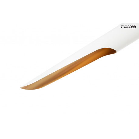 MOOSEE lampa wisząca CONTEO biała. Wykonana z formowanego aluminium lakierowanego na kolor biały. Wewnętrzna strona klosza w złotym kolorze doskonale rozprasza i „ogrzewa” światło. Całość jest zawie