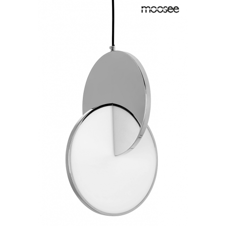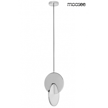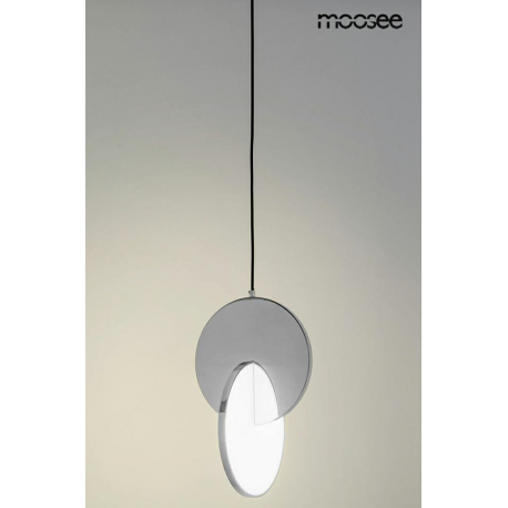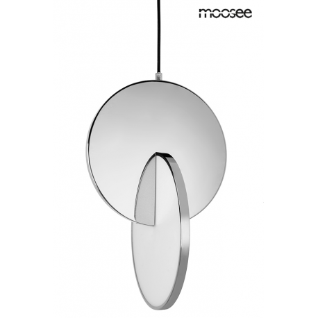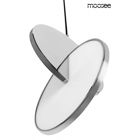 MOOSEE lampa wisząca DISCO srebrna. Oprawa w kolorze chromowanym została wykonana ze stali polerowanej. Niespotykane połączenie dwóch dysków, które tworzą wyjątkową całość. Wbudowany moduł LED o cie