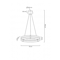 Saturnus to lampa jak wskazuje sama nazwa z innej galaktyki. Konstrukcja w kolorze złotym łącząca w sobie elementy kryształu w klasie K5 i metalu.Całość sprawia, że lampa nada wnętrzu wyjątkowego charakteru. Światło: LED 60 W / 4800 lm / 3000 K (możliwość regulacji podczas montażu w zakresie 25 - 60 W)Oprawa: szer. 150 cm / wys. 70 cm / gł. 70 cmMontaż: instalacja sufitowa.