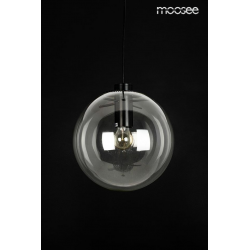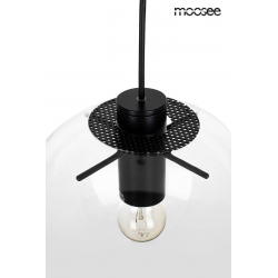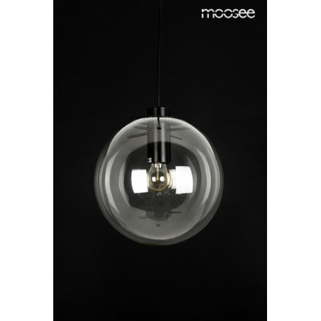 MOOSEE lampa wisząca SANDRA 35 czarna. Okrągły klosz całkowicie wykonano z transparentnego szkła. Wewnątrz klosza na stelażu z czarnego metalu zawieszone jest źródło światła. Lampa jest przeznaczona