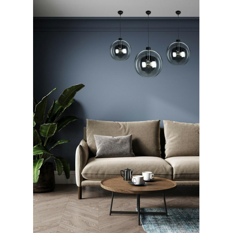 MOOSEE lampa wisząca SANDRA 35 czarna.Okrągły klosz całkowicie wykonano z transparentnego szkła.Wewnątrz klosza na stelażu z czarnego metalu zawieszone jest źródło światła.Lampa jest przeznaczona do przestrzeni nowoczesnych, jak i loftowych, czy industrialnych.W kloszu mogą pojawić się pęcherzyki powietrza, które są naturalnym efektem powstałym podczas ręcznej obróbki szkła.Światło: 1 x E27 max. 60 W (brak w zestawie)Wymiary: wys. 210 cm / szer. 35 cm / gł. 35 cmKlosz: śr.: 35 cmMocowanie: wys. 6 cm / śr. 10 cmPrzewód: 210 cmMontaż: instalacja sufitowaWaga netto: 3 kgWymiary opakowania: 43 cm / 43 cm / 53 cm.