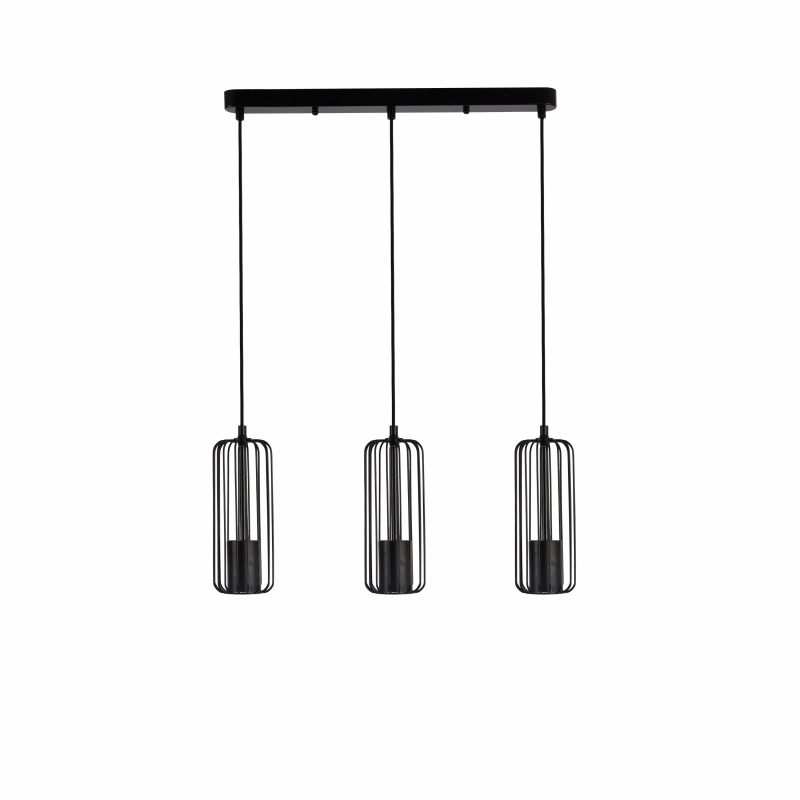 SINTRA 3 WISZĄCA - lampa na wymienne źródło światła, żarówkę GU10. Klosz z czarnych metalowych pręcików nawiązuje do loftowego stylu. Pojedyncza lampa wisząca sprawdzi się jako np. doświetlenie stolika kawowego, a w kombinacji 3 koło siebie pięknie doświetli kuchenną wyspę. W serii lamp SINTRA występuje także model na 3 żarówki.