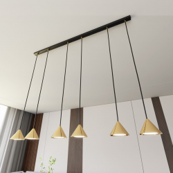 Seria lamp ELIT to kwintesencja elegancji i nowoczesności. Złote, stożkowe kształty nadają im minimalistyczny charakter, perfekcyjnie wpisując się w trendy wnętrzarskie. Te wiszące lampy nie tylko oświetlają pomieszczenie, ale także stanowią designerski element, dodając luksusowego akcentu. Uniwersalny design sprawia, że doskonale komponują się z różnymi stylami wnętrz, nadając im wyjątkowego charakteru. ELIT to idealne połączenie funkcjonalności i estetyki, które podkreślą wyjątkowy charakter każdego pomieszczenia