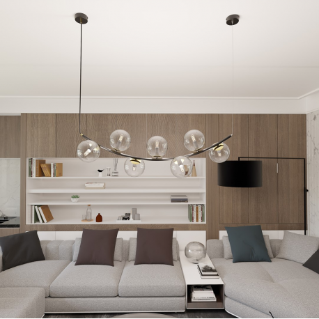 Wprowadź prostotę minimalistycznego designu do swojego wnętrza z lampą wiszącą RITZ. Wykonana ze stali w kolorze czarnym, doskonale współgra z transparentnym kloszem. Lampa w kształcie półkola z nieregularnym rozstawieniem kloszy nadaje wnętrzu wyjątkowego charakteru, podkreślając jej nowoczesny i wytworny styl. Ta lampa to idealny wybór dla tych, którzy pragną ożywić swoje wnętrza, tworząc oświetlenie, które będzie zarówno funkcjonalne, jak i estetyczne. Wyprodukowano w Polsce.