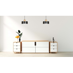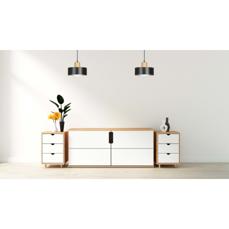 TORIN to minimalistyczna seria lamp sufitowych o prostej formie i stylowym designie. Model, który wpisze się idealnie w niemalże każdy wystrój wnętrza. Swoim wyglądem nawiązuje do bardzo modnego tylu skandynawskiego. Lampy TORIN posiadają otwarte metalowe klosze, dzięki którym lampa jest w stanie doskonale oświetlić nawet duże pomieszczenie.  Drewniane dodatki są bardzo miłe dla oka i przykuwają uwagę. Dostępna w dwóch kolorach: czarnym i białym, na 1 lub 3 źródła światła. Produkt w 100% polski.