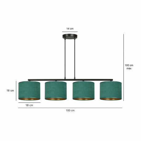 1051/4 - Lampa wisząca HILDE 4 BL GREEN - EMIBIG