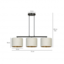 HILDE to seria lamp abażurowych idealna do nowoczesnych jak i klasycznych wnętrz. Regulacja długości przewodów umożliwia dostosowanie do własnych potrzeb. Abażury wykonane z trwałego materiału o welurowej fakturze ze złotym środkiem. Prosta konstrukcja i elegancka kolorystyka. Abażury dostępne w kolorze czarnym, białym, szarym, zielonym i różowym. Model z 1,3 lub 4 źródłami światła. Produkt w 100% polski.