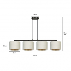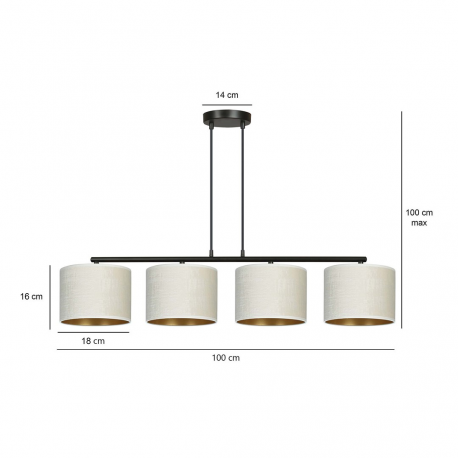 HILDE to seria lamp abażurowych idealna do nowoczesnych jak i klasycznych wnętrz. Regulacja długości przewodów umożliwia dostosowanie do własnych potrzeb. Abażury wykonane z trwałego materiału o welurowej fakturze ze złotym środkiem. Prosta konstrukcja i elegancka kolorystyka. Abażury dostępne w kolorze czarnym, białym, szarym, zielonym i różowym. Model z 1,3 lub 4 źródłami światła. Produkt w 100% polski.