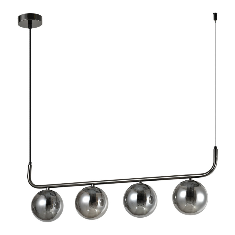 Materiał i kolorystyka: Lampa została wykonana z metalu w grafitowym kolorze oraz szklanych, przydymionych kloszy.
