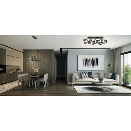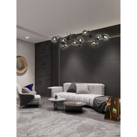 Ta lampa posiada 14 dymionych kloszy, które nie tylko nadają jej eleganckiego wyglądu, ale także pięknie odbijają światło, tworząc unikatową atmosferę w Twoim wnętrzu. Wykonana jest w nowoczesnym, minimalistycznym stylu, który pasuje do różnych rodzajów aranżacji.