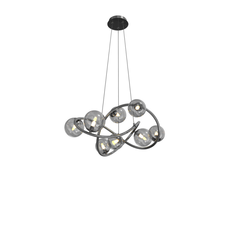 Ta lampa jest dostępna w kolorze czarnego chromu z dymionymi kloszami, który idealnie komponuje się ze wszystkimi kolorami ścian i mebli. Dzięki temu łatwo dopasujesz ją do swojego wnętrza.