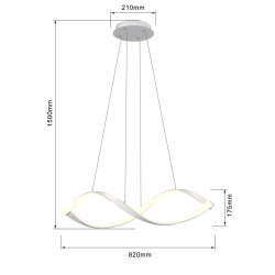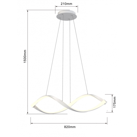 Lampa ma szerokość 82 cm i regulowaną wysokość aż do 150 cm, co sprawia, że jest idealna do montażu w pomieszczeniach o różnych rozmiarach.