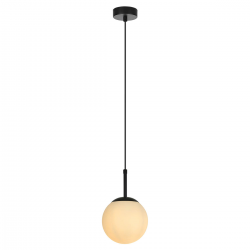 Lampa wisząca Dorado białe kulki to połączenie prostoty, stylu i funkcjonalności. Jej podsufitka wykonana z czarnego metalu idealnie komponuje się z mlecznym, szklanym kloszem, który delikatnie rozprasza światło, tworząc przytulną atmosferę w każdym pomieszczeniu.