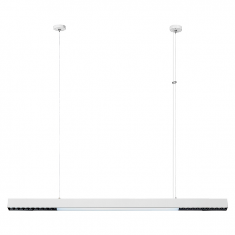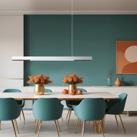 Lampa Cali L LED CCT łączy nowoczesny design z zaawansowaną technologią. Wykonana z trwałego, białego aluminium, ma kształt podłużnego prostopadłościanu, który łączy miniaturowe reflektorki z gładką akrylową blendą. Dzięki temu lampa pełni funkcję nie tylko źródła światła, ale także atrakcyjnego elementu dekoracyjnego. Zawieszona na regulowanych linkach o maksymalnej długości 120 cm, pozwala na dostosowanie wysokości do indywidualnych potrzeb. Technologia LED CCT umożliwia regulację barwy światła, dzięki czemu można dostosować oświetlenie do każdej sytuacji i nastroju. Lampa obsługiwana jest za pomocą aplikacji Tuya Smart, co pozwala na łatwe i wygodne zarządzanie oświetleniem z dowolnego miejsca w domu. Posiada klasę ochronności IP20, co zapewnia ochronę przed przedostawaniem się obiektów o średnicy co najmniej 12 mm do wnętrza lampy. Cali L LED CCT to idealne rozwiązanie dla osób ceniących nowoczesne technologie i prosty, elegancki design. Cali LED CCT to idealne rozwiązanie zarówno do przestrzeni domowych, jak i komercyjnych.