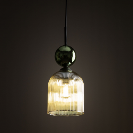 Rodzina lamp SOPHIA to wyjątkowe połączenie subtelnej formy, elegancji i funkcjonalności. Inspirowana ponadczasowym stylem glamour, zachwyca harmonijnym zestawieniem materiałów – ryflowanego szkła w różnych wykończeniach kolorystycznych (mlecznobiałym, koniakowym, zielonym), delikatnych złotych akcentów oraz smukłych, czarnych detali. To oświetlenie stworzone dla tych, którzy cenią wyrafinowany design i przytulną atmosferę. Rzeźbiarska forma ryflowanego klosza subtelnie rozprasza światło, tworząc przyjemny, nastrojowy blask, a kulisty element w wykończeniu złotym lub barwnym dodaje lampie lekkości i szyku, czyniąc ją nie tylko źródłem światła, ale i dekoracyjnym akcentem wnętrza. Rodzina SOPHIA obejmuje zarówno pojedyncze lampy wiszące, kinkiety, jak i efektowne kompozycje wielopunktowe, które doskonale sprawdzą się nad stołem w jadalni, w salonie, sypialni czy eleganckich przestrzeniach komercyjnych.
