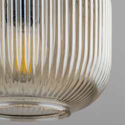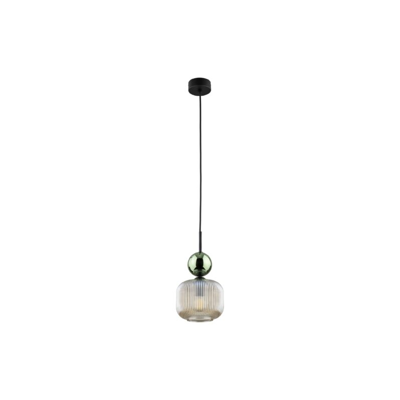 Rodzina lamp SOPHIA to wyjątkowe połączenie subtelnej formy, elegancji i funkcjonalności. Inspirowana ponadczasowym stylem glamour, zachwyca harmonijnym zestawieniem materiałów – ryflowanego szkła w różnych wykończeniach kolorystycznych (mlecznobiałym, koniakowym, zielonym), delikatnych złotych akcentów oraz smukłych, czarnych detali. To oświetlenie stworzone dla tych, którzy cenią wyrafinowany design i przytulną atmosferę. Rzeźbiarska forma ryflowanego klosza subtelnie rozprasza światło, tworząc przyjemny, nastrojowy blask, a kulisty element w wykończeniu złotym lub barwnym dodaje lampie lekkości i szyku, czyniąc ją nie tylko źródłem światła, ale i dekoracyjnym akcentem wnętrza. Rodzina SOPHIA obejmuje zarówno pojedyncze lampy wiszące, kinkiety, jak i efektowne kompozycje wielopunktowe, które doskonale sprawdzą się nad stołem w jadalni, w salonie, sypialni czy eleganckich przestrzeniach komercyjnych.