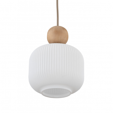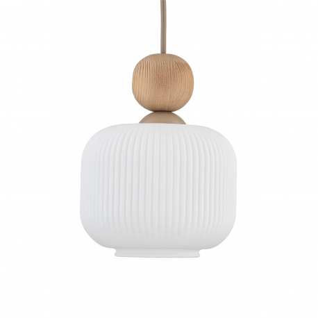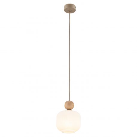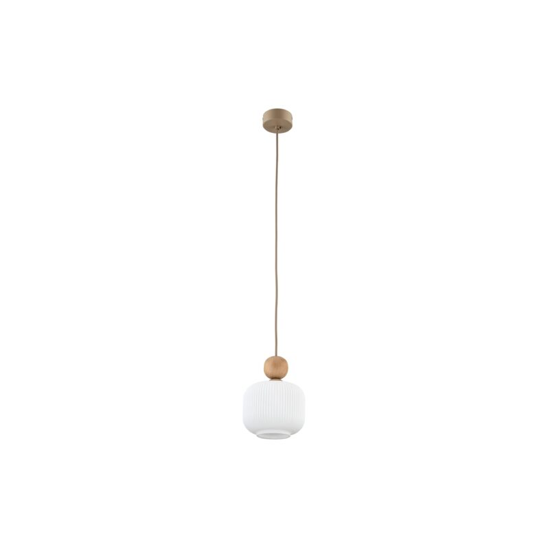 Rodzina lamp BALLO to elegancka kolekcja oświetlenia, która łączy nowoczesny styl z naturalnymi akcentami. Charakterystycznym elementem serii są ryflowane klosze z mlecznobiałego szkła, które subtelnie rozpraszają światło, tworząc przytulną atmosferę w każdym wnętrzu. Lampy zdobią także dekoracyjne, drewniane kule umieszczone nad kloszami, które wprowadzają ciepły, organiczny akcent. Całość uzupełnia podsufitka w kolorze Sabia – jasnego, piaskowego beżu, doskonale komponująca się z delikatną formą opraw. Kolekcja BALLO dostępna jest w wersjach z 1, 3, 4 i 6 źródłami światła, dzięki czemu łatwo dopasować ją do różnych przestrzeni i potrzeb aranżacyjnych.