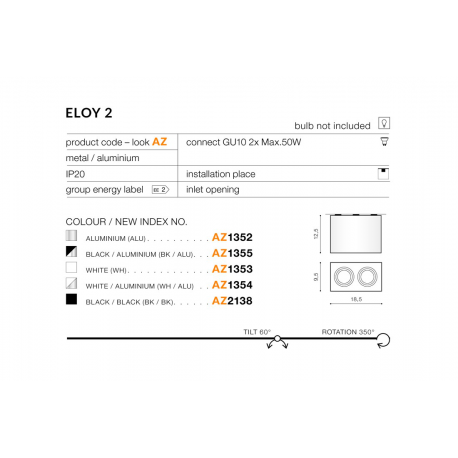 ELOY 2 AZ2138/GM4204 LAMPA NATYNKOWA CZARNA AZZARDO