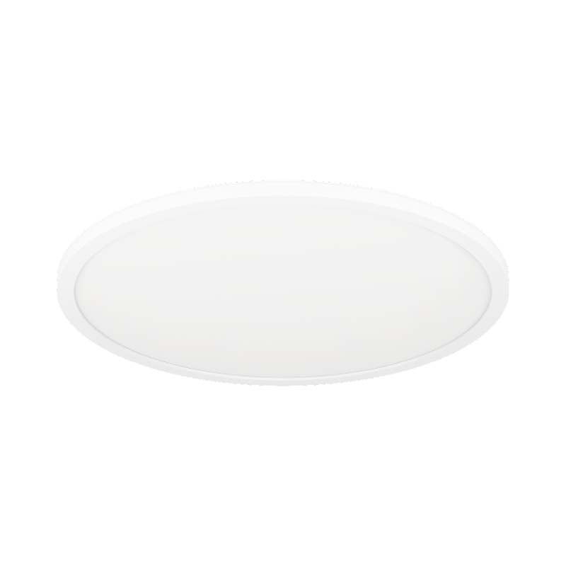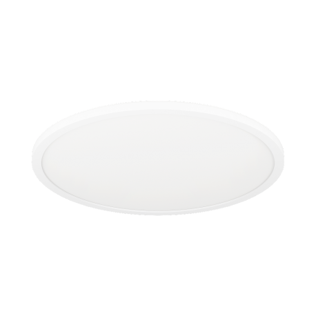 Lampa sufitowa LED ROVITO-Z z serii smart home Connect.Z. Okrągły plafon wykonany jest z białego tworzywa sztucznego z okrągłą białą przesłoną z tworzywa sztucznego