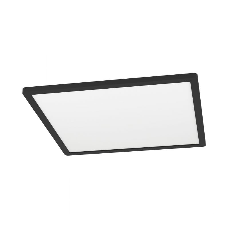 Lampa sufitowa LED ROVITO-Z z serii smart home Connect.Z. Kwadratowy plafon wykonany jest z tworzywa sztucznego w kolorze czarnym z białą przesłoną.