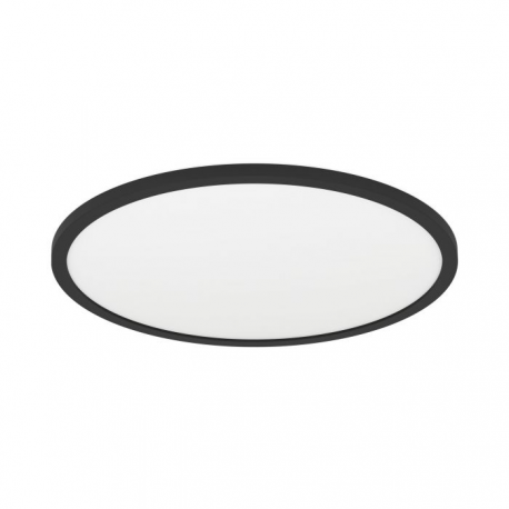 Lampa sufitowa LED ROVITO-Z z serii smart home Connect.Z. Okrągły plafon wykonany jest z tworzywa sztucznego w kolorze czarnym z białą przesłoną