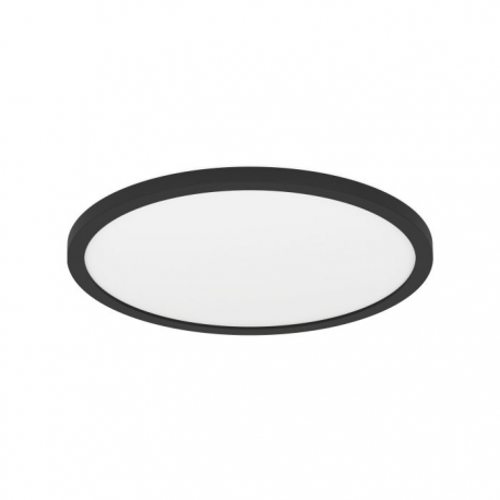 Lampa sufitowa LED ROVITO-Z z serii smart home Connect.Z. Okrągły plafon wykonany jest z tworzywa sztucznego w kolorze czarnym z białą przesłoną