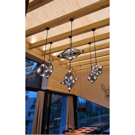 Konstelacja pionowa wisząca - produkt oświetleniowy, jaką jest konstelacja pionowa, to kolejna propozycja oświetlenia, nie tylko dla miłośników astronomii. Zachwyci także osoby, ceniące nowoczesność i oryginalny design. Swoją budową i kształtem, idealnie zgra się z popularnymi ostatnio asymetrycznymi sufitami. Co więcej, jeśli jesteście wierni prostym wnętrzom, konstelacja która ma geometryczne kształty, tylko uszlachetni Wasz wystrój. Niewątpliwie, wielkim atutem pionowej konstelacji jest czarny, przydymiony kolor, który z całą pewnością będzie współgrał z Waszą kolorystyką salonu i sypialni. Lampa wisząca pionowa konstelacja, nada nie tylko niepowtarzalne oświetlenie, ale także nastrojowy, magiczny klimat. Ponadto w połączeniu z poziomą konstelacją, która również jest u Nas dostępna, będą wzbudzać podziw i zainteresowanie wśród rodziny i znajomych.