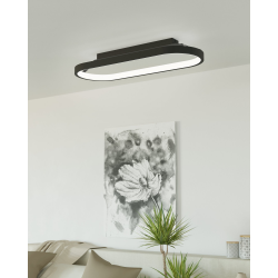 Lampa sufitowa LED CODRIALES wykonana jest z czarnej, eliptycznej metalowej obudowy z wewnętrznym profilem LED z białego tworzywa sztucznego. Zintegrowane diody LED zapewniają ciepłe, białe światło pośrednie i można je przyciemniać za pomocą odpowiedniego ściemniacza obrotowego na ścianie. Lampa sufitowa idealnie wpasowuje się w nowoczesne pomieszczenia i przyciąga wzrok w kuchni, sypialni, salonie czy przedpokoju.