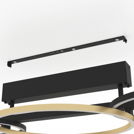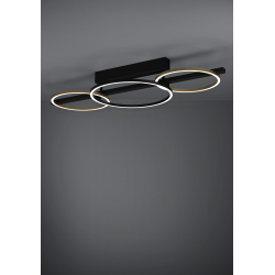Lampa sufitowa LED LANACERA składa się z okrągłych, metalowych profili w kolorze czarnym i złotym. Profile zostały połączone z czarną metalową podstawą. Diody LED umieszczone pod białymi, plastikowymi osłonami emitują przyjemne, ciepłe, białe światło. Dzięki stylowemu połączeniu czerni i złota lampa doskonale wpasowuje się w nowoczesne trendy mieszkaniowe i przyciąga wzrok w każdym pomieszczeniu - czy to w salonie, sypialni, przedpokoju czy jadalni.