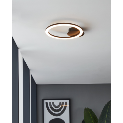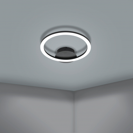 Lampa sufitowa LED PARRAPOS-Z z serii smart home connect.Z jest wykonana z czarnego, okrągłego profilu LED, który jest zamocowany pośrodku okrągłej, czarnej metalowej podstawy. Zintegrowane diody LED za białą plastikową powierzchnią świetlną zapewniają przyjemne światło zgodnie z Twoimi życzeniami. Masz wybór między ciepłą bielą, neutralną bielą i zimną bielą światła. Jest sterowany za pomocą bezpłatnej aplikacji (AwoX Home Control) i zapewnia dostęp do innych funkcji zapewniających komfort, takich jak ściemnianie, timer, symulacja obecności i wiele innych. Światło jest sterowane przez Bluetooth i ZigBee 3.0, a także umożliwia sterowanie za pomocą kompatybilnych asystentów językowych. Ponadto inteligentną lampą sufitową można sterować za pomocą dostępnego oddzielnie pilota.