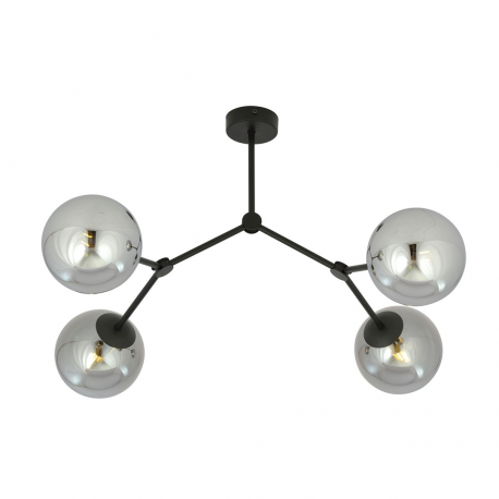 SPACE - ta lampa sufitowa idealnie wpisuje się w minimalistyczne trendy, ale jednocześnie zachwyca swoją oryginalną formą i unikalnym designem. Dodaje przestrzeni niepowtarzalnego charakteru i tworzy wyjątkowy klimat. Doskonale pasuje zarówno do salonu, sypialni, jak i kuchni nad wyspą lub stołem jadalnianym. Klasyczne barwy - elegancka czerń i ponadczasowe mleczne szkło - dają wiele możliwości aranżacyjnych i doskonale komponują się zarówno z wnętrzami nowoczesnymi, jak i tradycyjnymi. Niezwykła konstrukcja lampy przyciąga uwagę, a rozproszone w różnych kierunkach klosze skutecznie oświetlają całe pomieszczenie. To nasz bestseller! Wykonana z wysokiej jakości materiałów. Dostępne kolory kloszy to grafit, miodowy, transparentny oraz stripe (transparentny z czarnym pasem). To produkt w 100% polski.