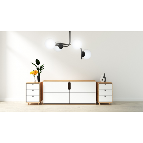 Plafony sufitowe KALF to doskonałe uzupełnienie zarówno nowoczesnych, jak i klasycznych wnętrz. Najbardziej efektownie prezentują się zawieszone nad stołem lub wyspą, nadając pomieszczeniu niepowtarzalny nastrój. Delikatny, mleczny klosz dodaje serii KALF elegancji i lekkości. Minimalistyczna forma doskonale oświetli nawet duże powierzchnie i idealnie wpisze się w większość aranżacji domowych. To minimalna forma, która zapewnia maksymalny efekt. Nasze lampy serii KALF są wykonane z materiałów najwyższej jakości, aby zapewnić trwałość i satysfakcję z użytkowania. Dostępne są w kolorze czarnym lub białym, na 2, 3 lub 4 źródła światła.