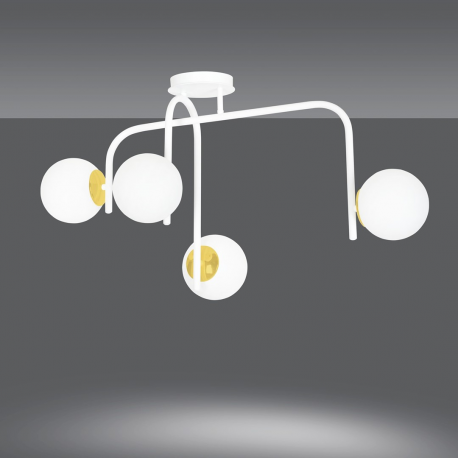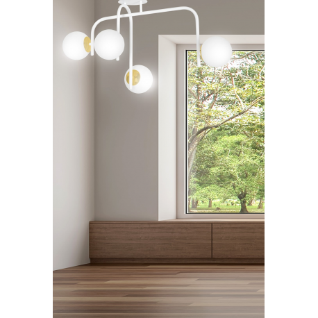 RAGNAR - seria nowoczesnych lamp sufitowych, idealna do wnętrz zarówno modernistycznych jak i tradycyjnych. Doskonale wygląda nad stołem lub wyspą, wprowadzając niepowtarzalny nastrój. Delikatne szklane klosze dodają elegancji i lekkości, a złote dodatki pięknie rozświetlają całość dodając jej blasku. Bardzo oryginalna forma lamp RAGNAR świetnie oświetla duże powierzchnie i doskonale komponuje się z różnymi aranżacjami. Ciekawa konstrukcja przyciąga uwagę i prezentuje się niezwykle stylowo. Wykonane z najwyższej jakości materiałów. Polski produkt. Dostępna w wersji na 2, 3 lub 4 źródła światła w kolorze czarnym lub białym.