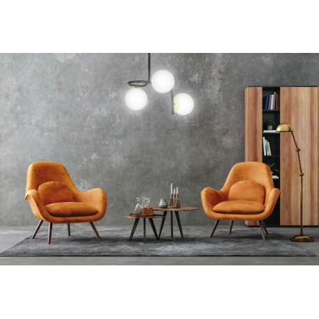 RAGNAR - seria nowoczesnych lamp sufitowych, idealna do wnętrz zarówno modernistycznych jak i tradycyjnych. Doskonale wygląda nad stołem lub wyspą, wprowadzając niepowtarzalny nastrój. Delikatne szklane klosze dodają elegancji i lekkości, a złote dodatki pięknie rozświetlają całość dodając jej blasku. Bardzo oryginalna forma lamp RAGNAR świetnie oświetla duże powierzchnie i doskonale komponuje się z różnymi aranżacjami. Ciekawa konstrukcja przyciąga uwagę i prezentuje się niezwykle stylowo. Wykonane z najwyższej jakości materiałów. Polski produkt. Dostępna w wersji na 2, 3 lub 4 źródła światła w kolorze czarnym lub białym.
