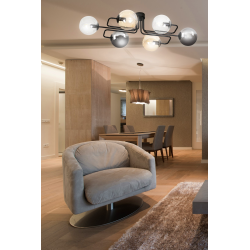 Seria BRENDI to doskonałe plafony sufitowe, które będą idealnym uzupełnieniem zarówno nowoczesnych, jak i bardziej tradycyjnych wnętrz. Dzięki swojej minimalistycznej formie świetnie sprawdzą się szczególnie w niższych pomieszczeniach. Tworzą niepowtarzalny nastrój, a delikatne szklane klosze dodają serii BRENDI elegancji i lekkości. Plafony doskonale oświetlą nawet duże przestrzenie, doskonale wpisując się w różnorodne aranżacje domowe. Te lampy to minimalizm i maksymalny efekt w jednym. Plafony wykonane są z najwyższej jakości materiałów, a dostępne kolory kloszy to grafit, miodowy i transparentny. Seria dostępna w wersji na 4 lub 6 źródeł światła. Produkt jest w 100% polski.