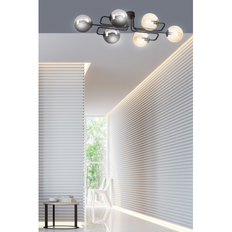 Seria BRENDI to doskonałe plafony sufitowe, które będą idealnym uzupełnieniem zarówno nowoczesnych, jak i bardziej tradycyjnych wnętrz. Dzięki swojej minimalistycznej formie świetnie sprawdzą się szczególnie w niższych pomieszczeniach. Tworzą niepowtarzalny nastrój, a delikatne szklane klosze dodają serii BRENDI elegancji i lekkości. Plafony doskonale oświetlą nawet duże przestrzenie, doskonale wpisując się w różnorodne aranżacje domowe. Te lampy to minimalizm i maksymalny efekt w jednym. Plafony wykonane są z najwyższej jakości materiałów, a dostępne kolory kloszy to grafit, miodowy i transparentny. Seria dostępna w wersji na 4 lub 6 źródeł światła. Produkt jest w 100% polski.