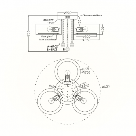 Źródła światła: Plafon jest przystosowany do trzech żarówek typu E27, nie dołączone do lampy