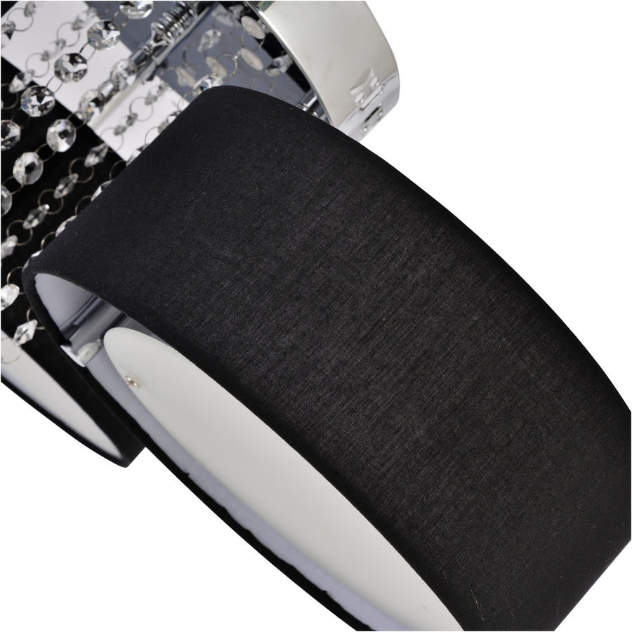 Materiały i jakość wykonania: Plafon został stworzony z wysokiej jakości materiałów, w tym kloszy z materiału i kryształów ze szkła, które pięknie rozpraszają światło.