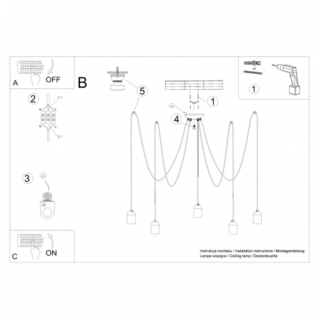 Źródło światła: E27, 5x max 15 W LED, 50Hz, ~230V, IP20, klasa ochronności I