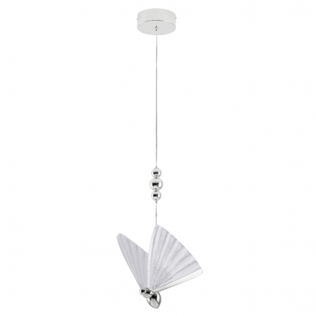 Pojedyncza lampa wisząca Mariposa to nie tylko funkcjonalne oświetlenie, ale również elegancki i wyszukany element dekoracyjny, który doskonale uzupełni każde wnętrze. Ta wersja lampy wyróżnia się chromowanym kolorem podsufitki i stelaża, nadając jej nowoczesnego i błyszczącego wyglądu. Lampa Mariposa posiada wbudowane oświetlenie LED, subtelnie umieszczone w motylich skrzydłach. Dzięki technologii LED CCT (Correlated Color Temperature) możliwe jest dostosowanie barwy światła do swoich preferencji - od ciepłej, przez neutralną, aż po zimną. Barwę światła ustawia się przed montażem, w podsufitce lampy. Lampa wykonana jest z wysokiej jakości akrylu i metalu, cechuje ją staranne wykonanie i dbałość o każdy detal.