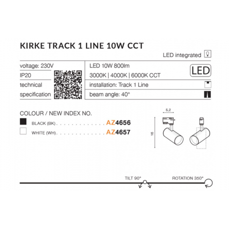 KIRKE LED 10W CCT LAMPA DO SZYNOPRZEWODU 1-fazowego AZZARDO AZ4657