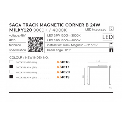SAGA 30 MAGNETIC CORNER B 24W 3000k LAMPA DO 1-fazowego SZYNOPRZEWODU MAGNETYCZNEGO AZZARDO AZ4618